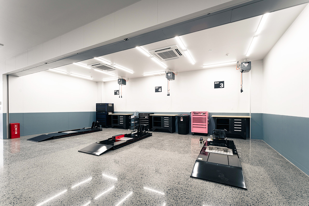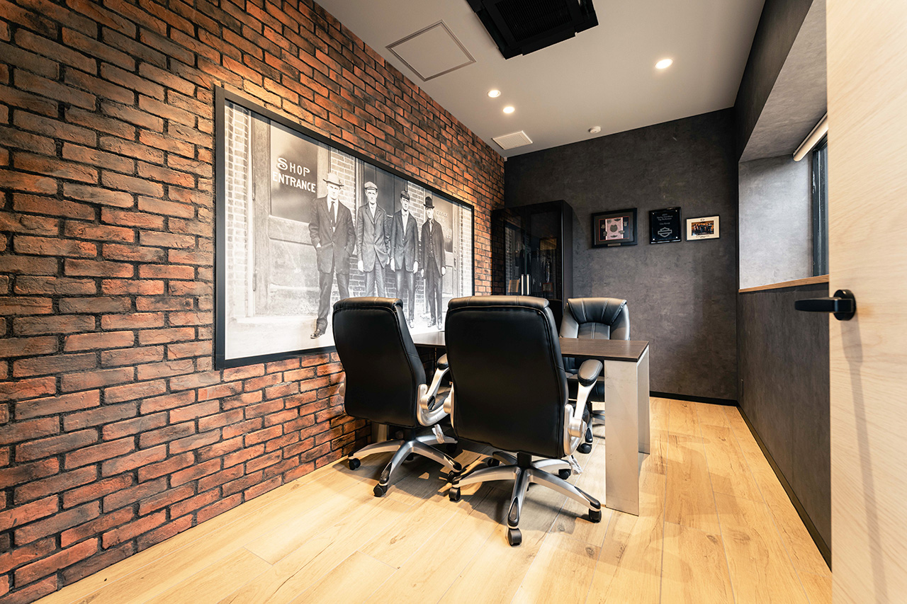 まるで森の中にバイクが佇むような空間をデザインしました。
